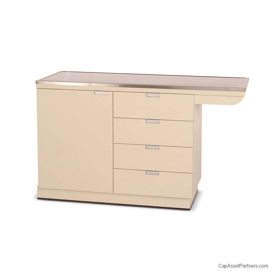Featuring a spacious knee area, these tables allow for comfortable access during examinations. The convenient four full-extension drawers provide ample storage for essential tools and supplies, while the large cabinet ensures everything you need is within reach. Standing at a height of 36", these tables promote ergonomic use for veterinarians and their staff.