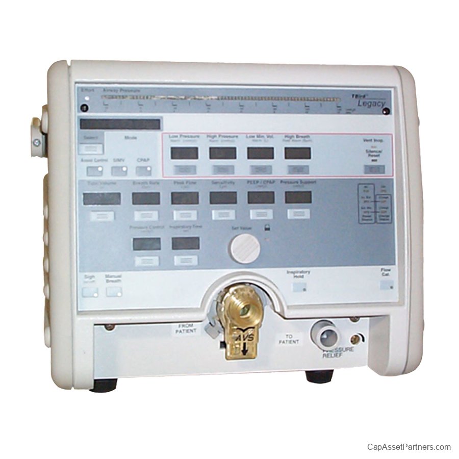 The Bird Legacy Ventilator stands out in the realm of portable volume ventilators, utilizing a turbine-driven system that ensures a lightweight design while minimizing heat generation. This exceptional ventilator features multiple operating modes, including Control, Assist/Control, SIMV (Synchronized Intermittent Mandatory Ventilation), and CPAP (Continuous Positive Airway Pressure), providing versatile options for a variety of patient needs.