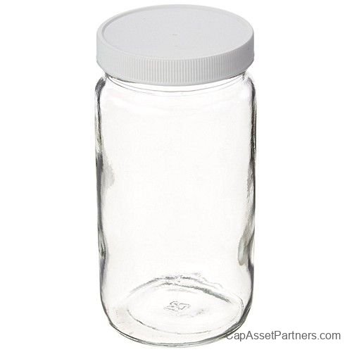 Clear Glass Tall Straight Sided Wide Mouth Jars Assembled with White Polypropylene Closure, F217 Lined