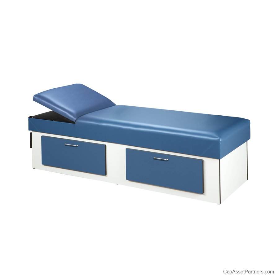 Elevate your medical practice with the Clinton Upholstered Apron Couch with Double Drawer Storage -