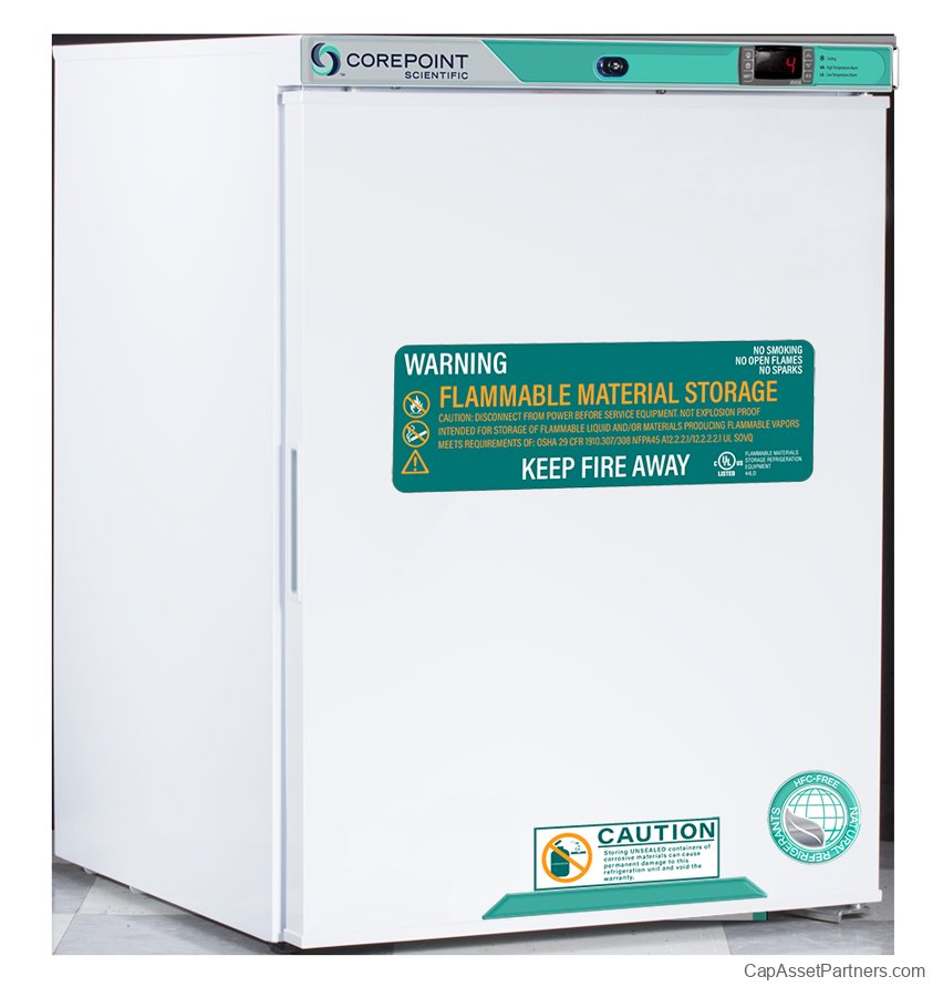 Corepoint Scientific White Diamond Series Undercounter Flammable Storage Refrigerator