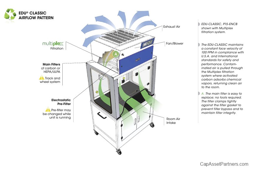 Experience unparalleled safety and efficiency in laboratory settings with the EDU™ Classic Series Ductless Demonstration Fume Hoods. Designed for educational environments, these state-of-the-art fume hoods provide a comprehensive solution for fume containment and air filtration, ensuring the protection of students and instructors alike.