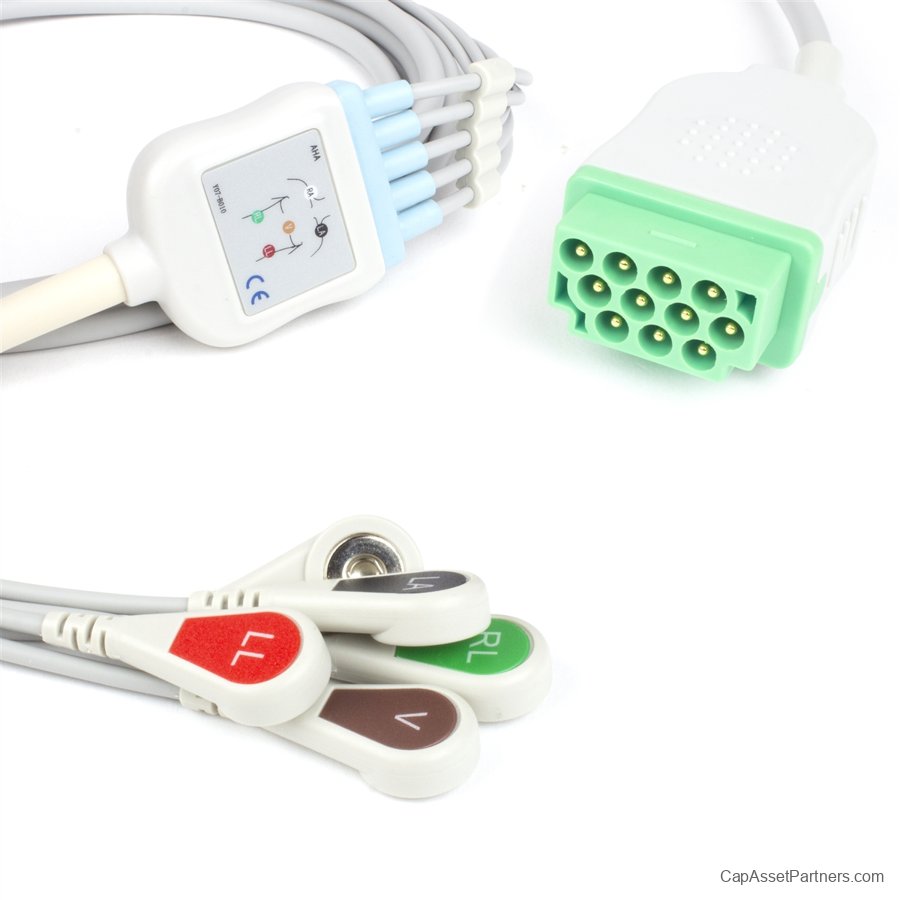 GE Marquette Fixed ECG Lead Wire Set 5 Lead Snap Clip to 11 Pin Connector