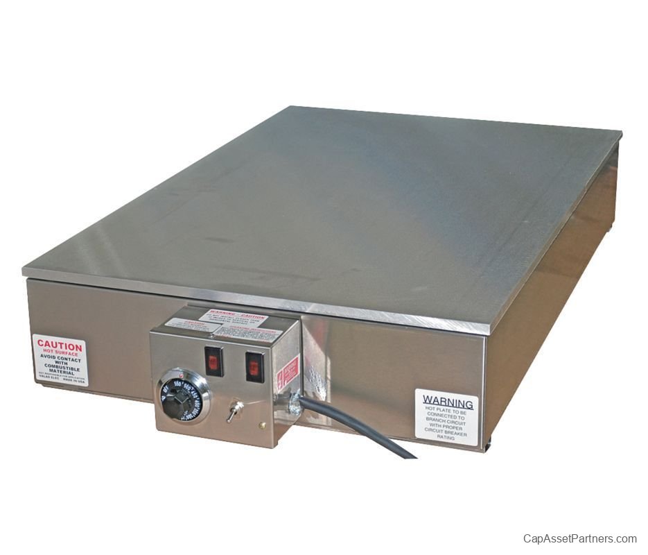Note: Heat-up times may vary based on the load and wattage of the hot plate. Ensure proper safety measures are in place, as high temperatures can result in hazards. Each unit is made to order and is non-returnable once opened. Alternative construction styles are available, including different top sizes, varying top thickness, and specific thermostat settings. For further inquiries, please contact us.