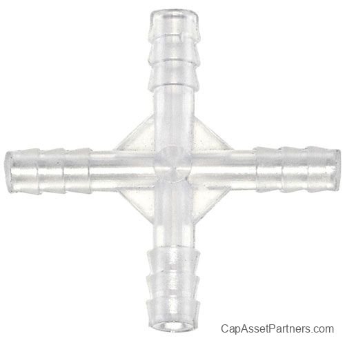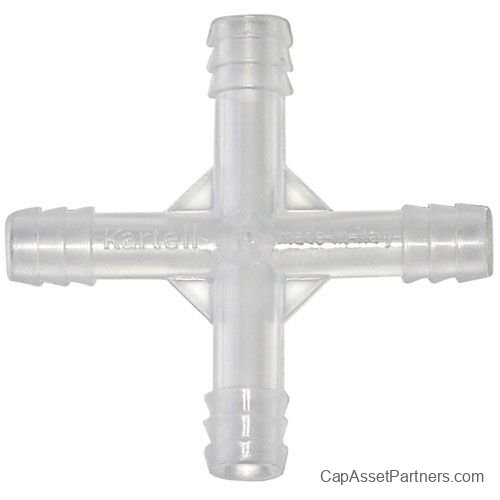 Enhance your medical or laboratory setup with the Kartell 4-Way Tubing Connector, a reliable solution designed for seamless fluid transfer. This connector features serrated connecting surfaces that ensure a secure fit, significantly reducing the risk of tubing slippage, even under pressure.