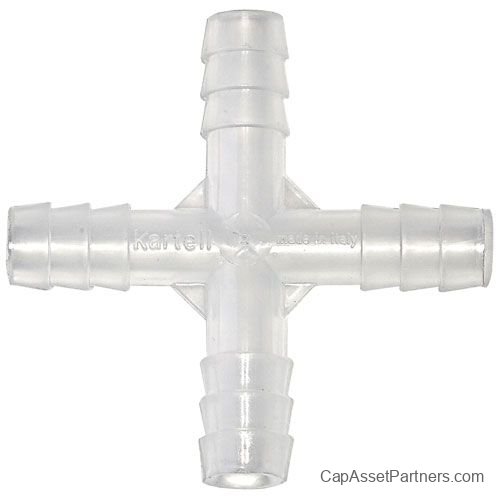 Choose the Kartell 4-Way Tubing Connector for your laboratory or medical applications; its robust design and efficient functionality will meet your needs for reliable fluid transfer and secure tubing connections.