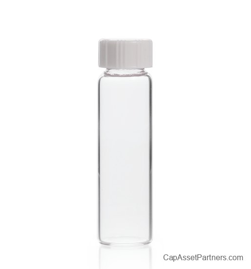 - • Features a closed top white PTFE closure that ensures a secure seal, minimizing contamination risks and evaporation.