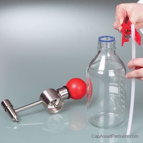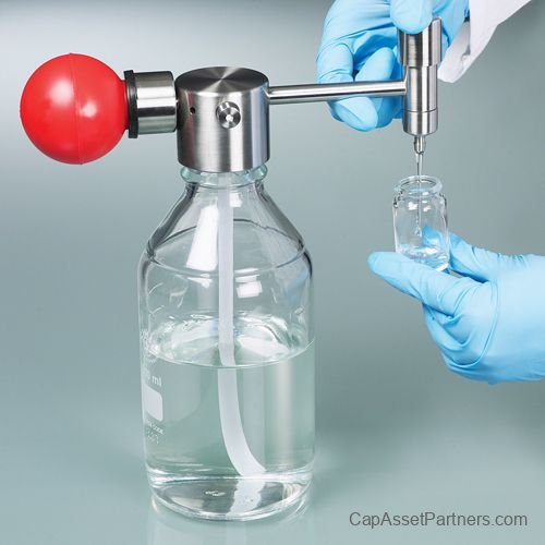 Experience precision and efficiency with the Mini Solvent Pump, expertly designed to operate based on the excess pressure principle. Utilizing a durable pump ball along with high-quality PTFE tubing, this compact pump forces liquid seamlessly from its container, offering impeccable filling capabilities with minimal effort.
