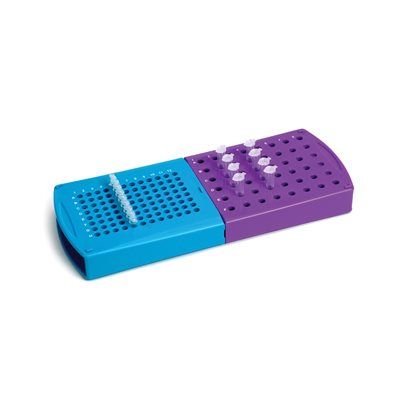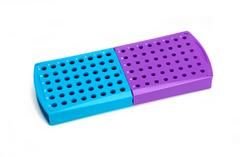 • The purple section accommodates 96 x 0.2 mL tubes in a standard array pattern and 48 x 1.5 mL tubes on the reverse side.