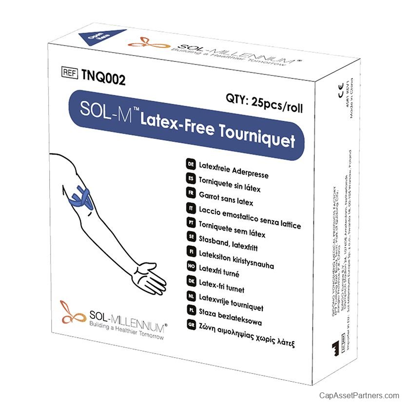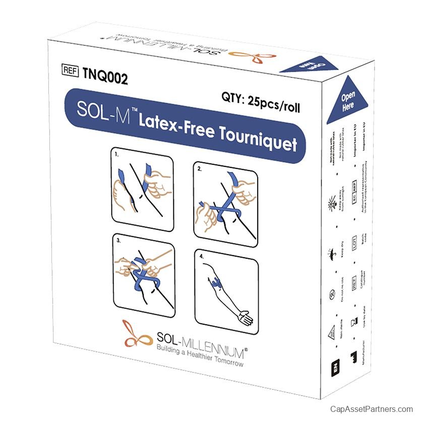 - Space-Saving Packaging: Packaged in a convenient box, the SOL-M™ Latex-Free Tourniquets are designed for easy storage and quick dispensing, making them ideal for both hospitals and first responders.