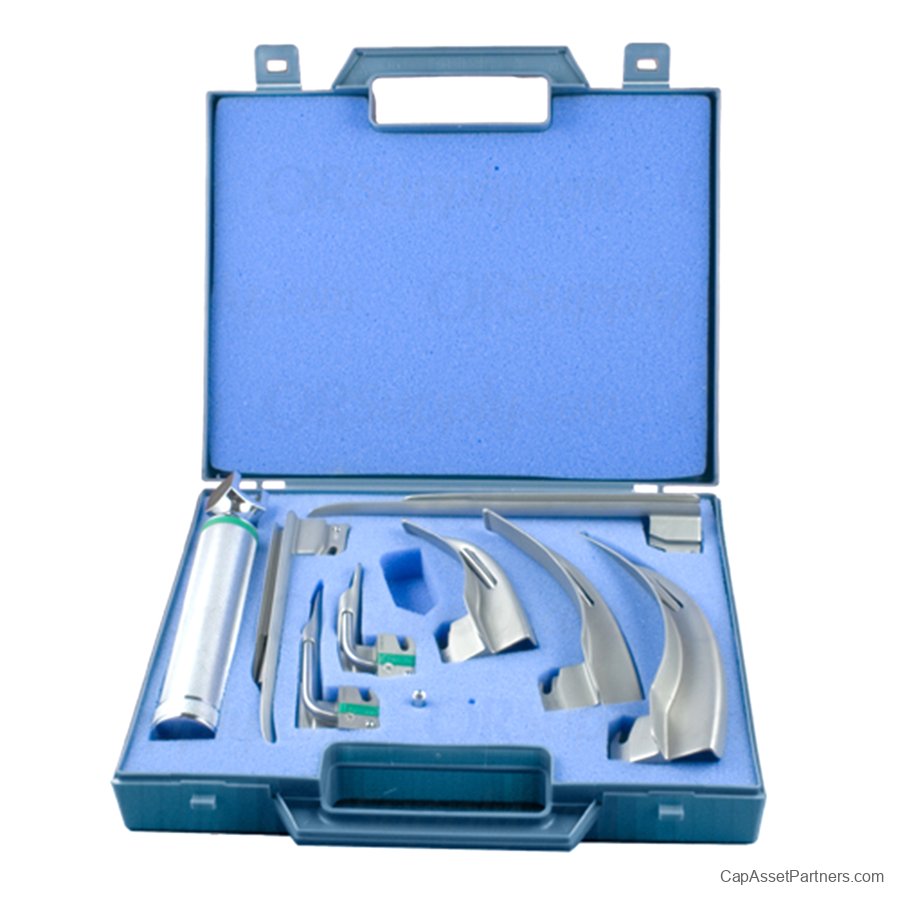- Complete assortment of popular laryngoscope blades